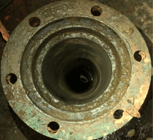 The condition of the pipe was found to be heavily tuberculated. The original size of the pipe was 6”, but with the heavy tuberculation, the pipe's ID was reduced to ~1.